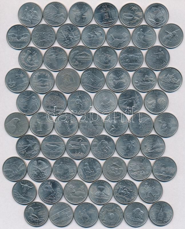 Amerikai Egyesült Államok 1999-2015. 1/4$ (64xklf) "50 Állam", "Nemzeti Parkok" T:1-,2