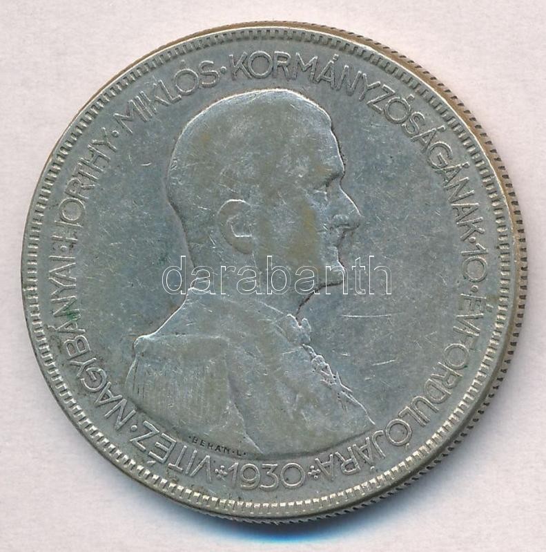 Leírás: 1930. 5P Ag "Horthy jobbra" T:3