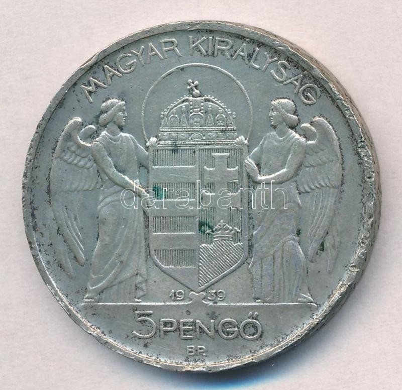 Leírás: 1939. 5P Ag "Horthy balra" T:3 patina, ph.
