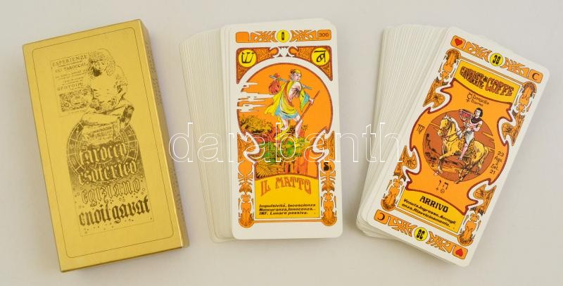 1983 Enoil Gavat tarot kártya pakli, 78+2 lap, eredeti dobozában, olasz nyelven, angol nyelvű kísérő szöveggel. Trevisio-New York, Dal Negro-U.S. Games Systems. Jó állapotban.
