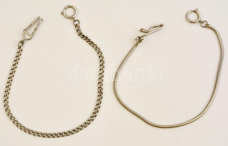 Leírás: 2 db fém zsebóralánc, h: 29 és 30 cm