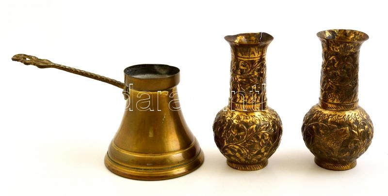 3 db réz tárgy (2 db mini váza, 1 db kiöntő), m: 8,5 és 11,5 cm https://www.darabanth.com/hu/318-Gyorsarveres/318.0/Festmeny-mutargy-papirregiseg-egyeb/Bolhapiac~11/3-db-rez-targy-2-db-mini-vaza-1-db-kionto-m-8-5-es-11-5-cm~II1684255