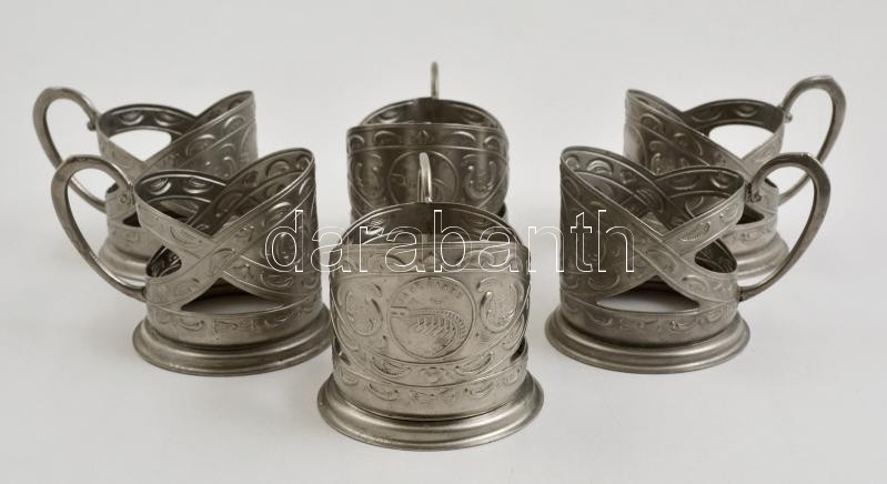 Leírás: 6 db szovjet fém teáspohár-tartó, jó állapotban