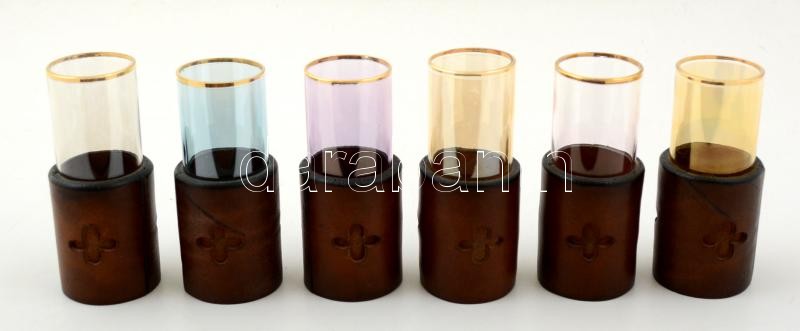 Leírás: Bőr kupicás készlet, m:10 cm (6×), 32×23 cm