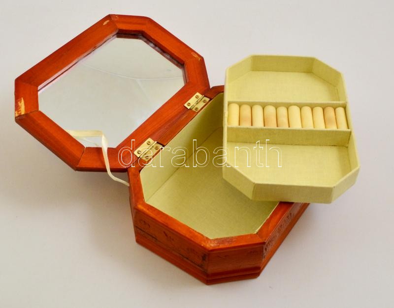Leírás: Ékszertartó fa doboz, 22×15 cm