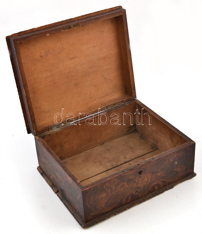 Hadifogoly által készített fa doboz, laktanya ábrázolásával, sérült, k... https://www.darabanth.com/hu/318-Gyorsarveres/318.0/Festmeny-mutargy-papirregiseg-egyeb/Bolhapiac~11/Hadifogoly-altal-keszitett-fa-doboz-laktanya-abrazolasaval-serult-kulcs-nelkul-28x23x~II1758046