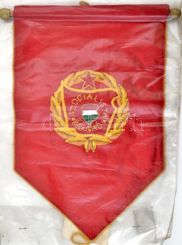 Hímezett szocialista brigádzászló, 38×24 cm https://www.darabanth.com/hu/318-Gyorsarveres/318.0/Festmeny-mutargy-papirregiseg-egyeb/Bolhapiac~11/Himezett-szocialista-brigadzaszlo-38C39724-cm~II1757550