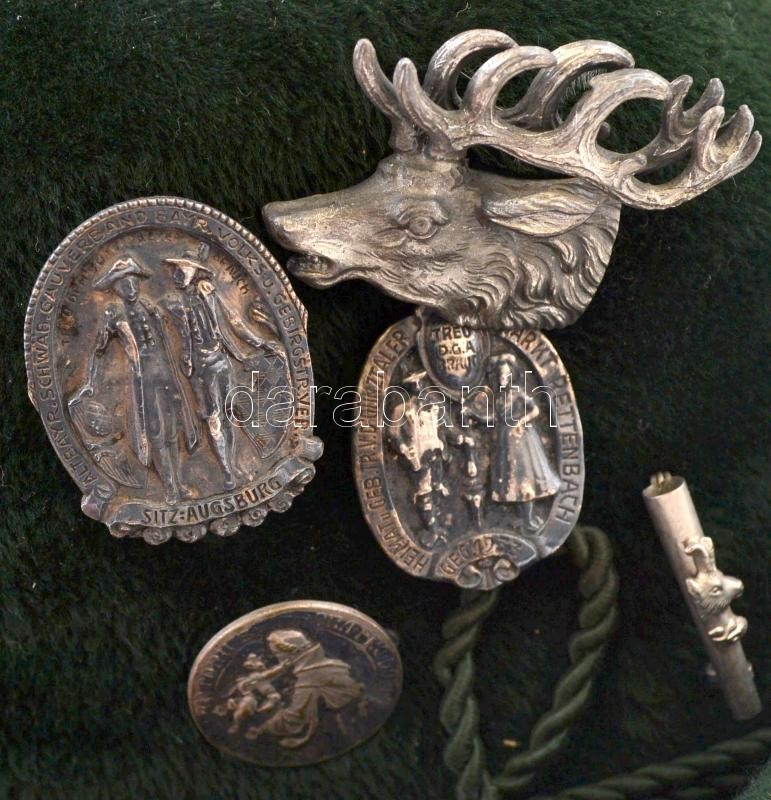 Leírás: Jelzett plüss vadász sapka jelvényekkel, belső:20×16 cm, 28×23 cm