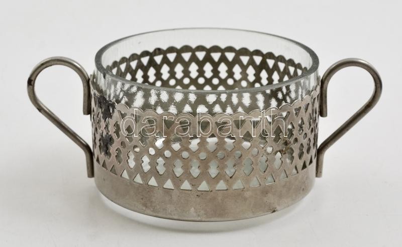 Leírás: Kétfüles kis cukortartó üveg betéttel, 9x6 cm