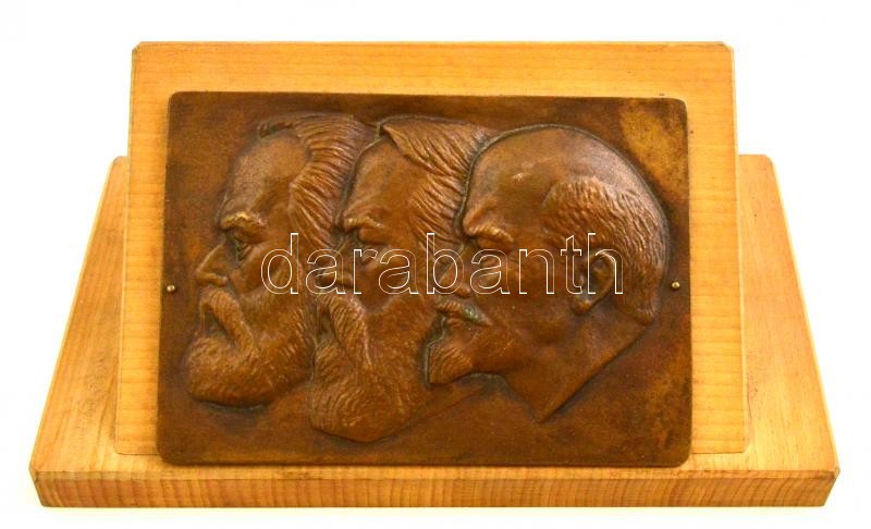Leírás: Marx, Engels, Lenin, bronz asztali dísz, fa talapzaton, m: 11 cm