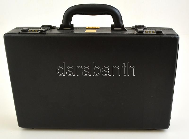 Leírás: President számzáras műbőr aktatáska, jó állapotban, 39x26x7 cm