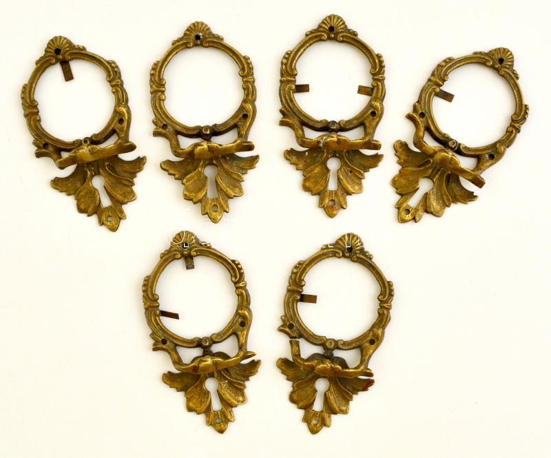 Leírás: Régi réz bútorveretek, 6 db, 9x4 cm