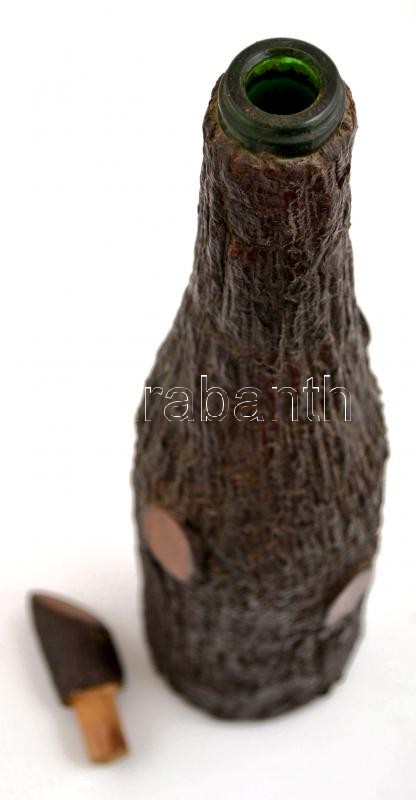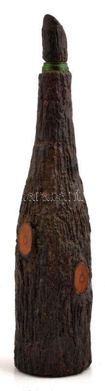 Leírás: Üveg boros palack, fa kéreg köpennyel, jó állapotban, m:38 cm