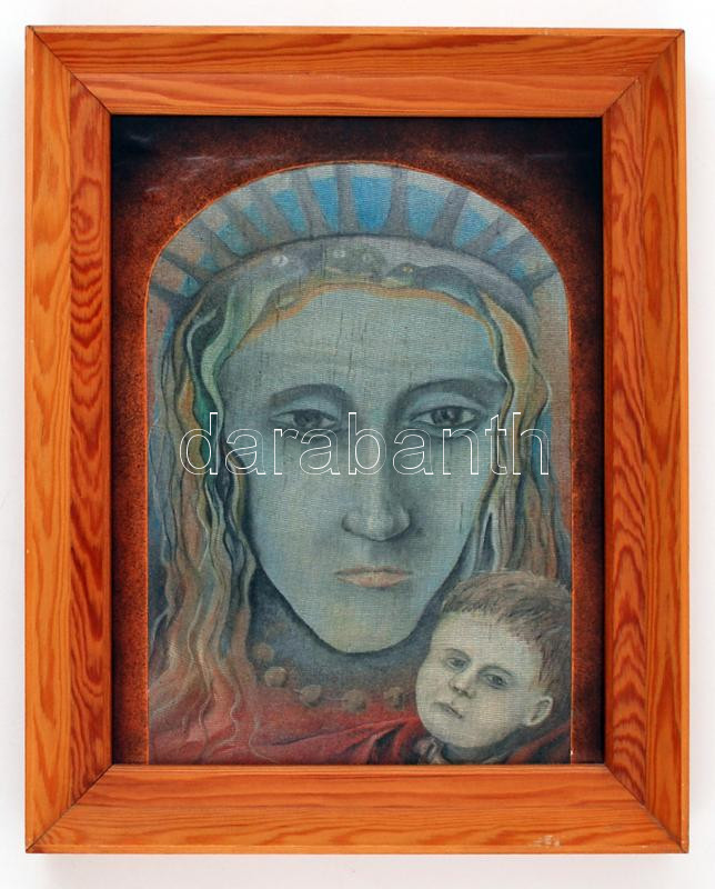 Leírás: Bari Árpád (1953-): Madonna a kis Jézussal. Olaj, vászon-farost, jelzett a keret alatt, keretben 34×24 cm