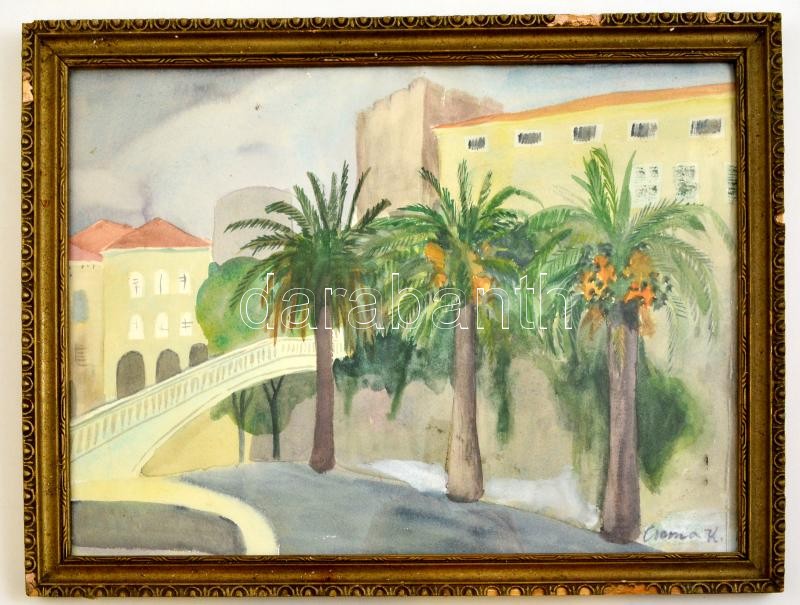 Cserna jelzéssel: Pálmafák a hídnál. Akvarell, papír, üvegezett keretb... https://www.darabanth.com/hu/318-Gyorsarveres/318.0/Festmeny-mutargy-papirregiseg-egyeb/Festmenyek-es-grafikak~1/Cserna-jelzessel-Palmafak-a-hidnal-Akvarell-papir-uvegezett-keretben-28C39738-cm~II1750030
