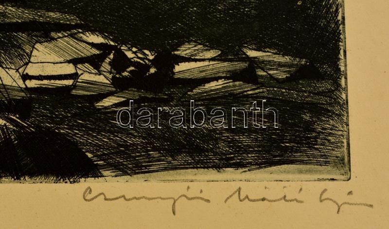Leírás: Csurgói Máté Lajos (1931-2001): Hullámgát, rézkarc, papír, jelzett, 28,5×38 cm