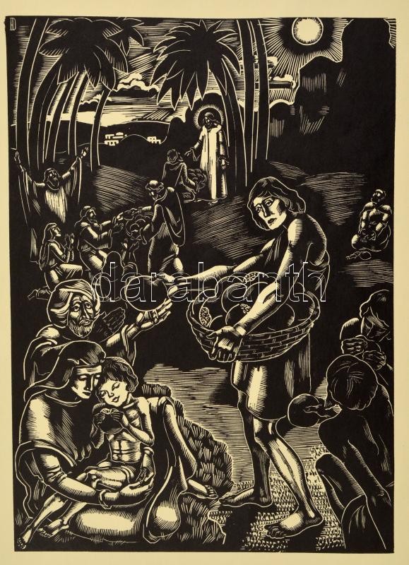 Dallos Hanna (1907-1944): Kenyérszaporítás, fametszet, papír, jelzett ... https://www.darabanth.com/hu/318-Gyorsarveres/318.0/Festmeny-mutargy-papirregiseg-egyeb/Festmenyek-es-grafikak~1/Dallos-Hanna-1907-1944-Kenyerszaporitas-fametszet-papir-jelzett-a-metszeten-35-5C39727-5-cm~II1753131