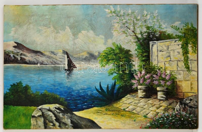 Leírás: Eilien jelzéssel: Mediterrán vitorlás, olaj, vászon, 63×98 cm