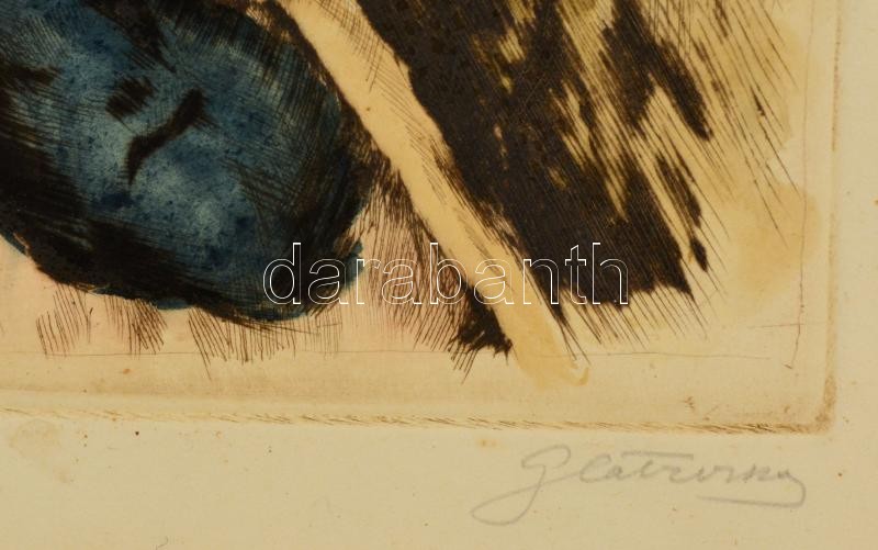 Leírás: Glatz Oszkár (1862-1958)-Prihoda István (1891-1956): Parasztlányka. Színezett rézkarc, papír, jelzett, üvegezett keretben, 35×24 cm