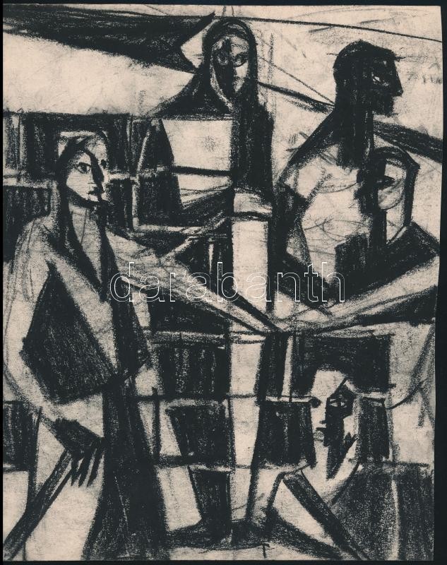 Leírás: Jelzés nélkül: Alakok. Szén, papír, 24×19 cm