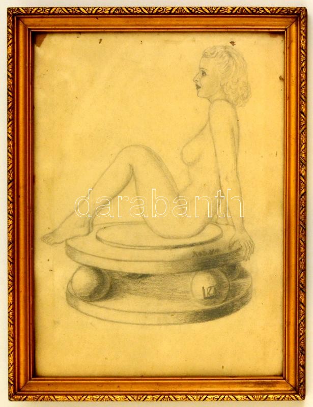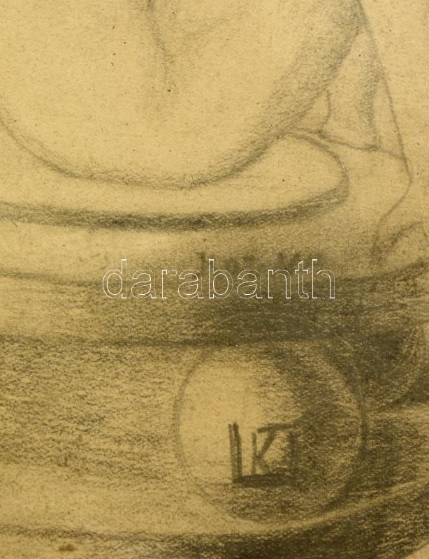 Leírás: Kozma jelzéssel: Női akt. Ceruza, papír, üvegezett keretben, 30×23 cm