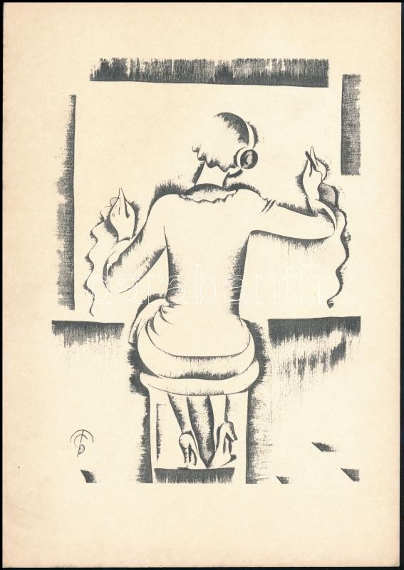 Leírás: Molnár C. Pál (1894-1981): Telefonos kisasszony. Ofszet, papír, 30x21 cm