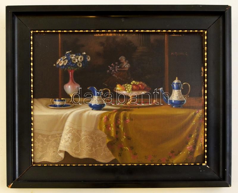 Leírás: Reiner jelzéssel: Asztali csendélet. Olaj, falemez, keretben, 20×26 cm