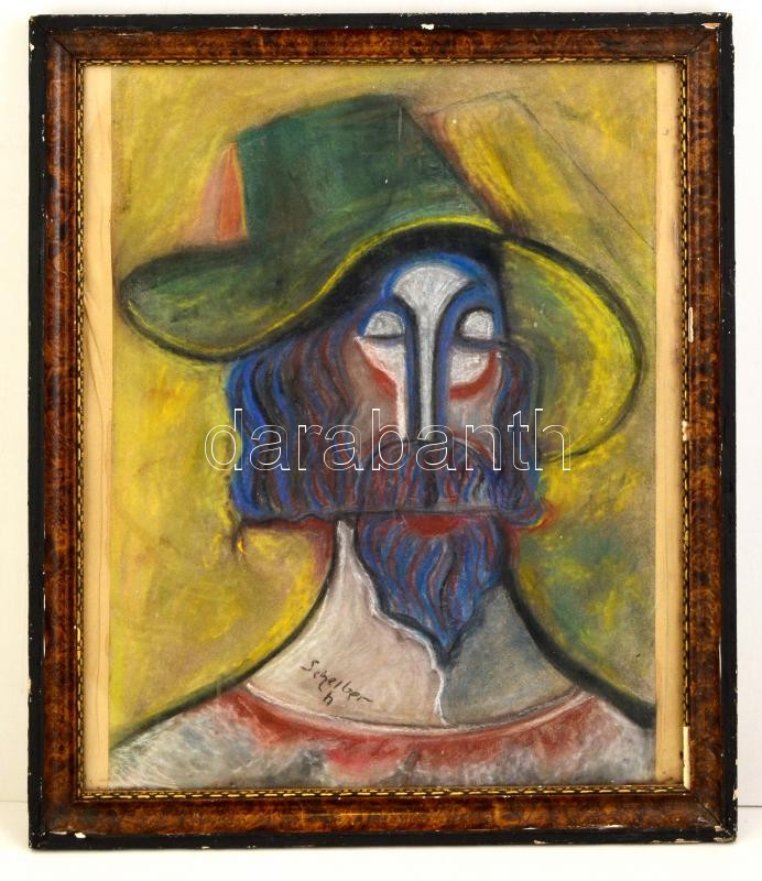 Leírás: Scheiber jelzéssel: Kalapos férfi. Pasztell, papír, üvegezett keretben, 62×45 cm