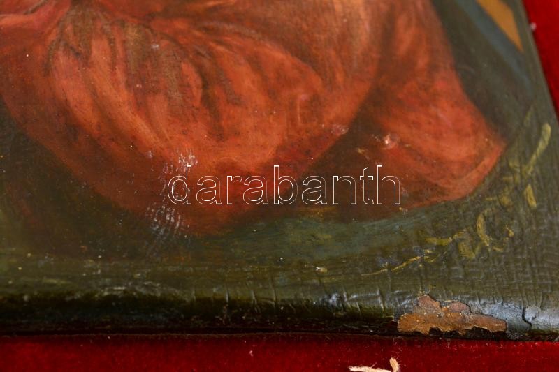 Leírás: cca 1860 Jelzés nélkül: Keresztet cipelő Krisztus. Olaj, fa tábla, apró festék lepattanásokkal, 22,5×17 cm