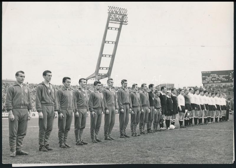 Leírás: 1963 A magyar válogatott magyar-osztrák mérkőzésen, fotó, hátulján feliratozva, 13×18 cm