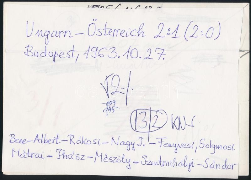 1963 A magyar válogatott magyar-osztrák mérkőzésen, fotó, hátulján fel... https://www.darabanth.com/hu/318-Gyorsarveres/318.0/Festmeny-mutargy-papirregiseg-egyeb/Foto~19/1963-A-magyar-valogatott-magyar-osztrak-merkozesen-foto-hatuljan-feliratozva-13C39718-cm~II1756876