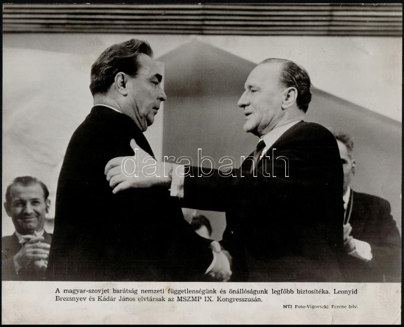 1966 Brezsnyev és Kádár János találkozása az MSZMP IX. Kongresszusán, ... https://www.darabanth.com/hu/318-Gyorsarveres/318.0/Festmeny-mutargy-papirregiseg-egyeb/Foto~19/1966-Brezsnyev-es-Kadar-Janos-talalkozasa-az-MSZMP-IX-Kongresszusan-MTI-sajtofoto-felul~II1753123