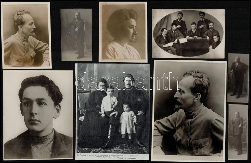 Leírás: Vegyes fotó és újságkivágás tétel, közte neves személyek, pl. Rosa Luxemburg, 18 db, 9,5x3 és 23x17 cm