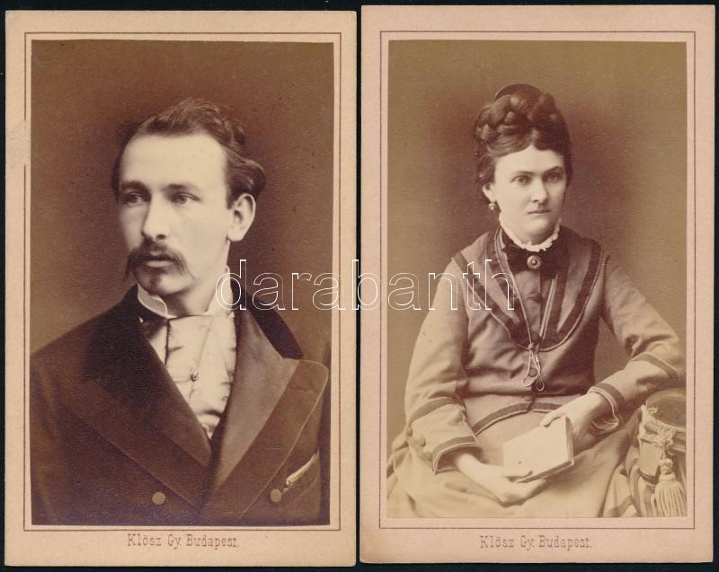 Leírás: cca 1864 Klösz György pesti fényirdai műtermében készült 2 db vizitkártya méretű vintage fénykép, 10,5x6,5 cm