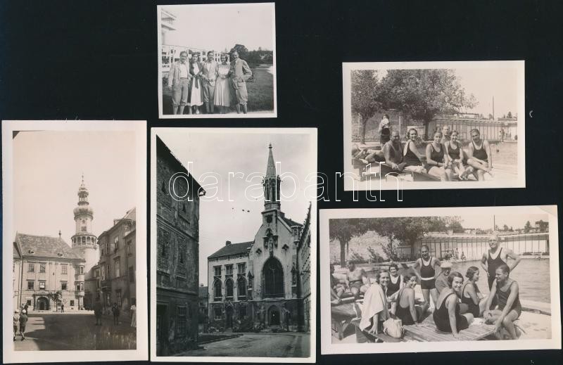 Leírás: cca 1930 Sopron, Lővér fürdő, 5 db fotó, 5,5x5,5 és 11,5x8 cm