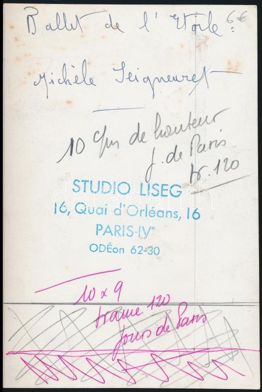 cca 1950 Michele Seigneuret, French Ballet Danser, Maurice Bejart pecséttel jelzett, publikálásra előkészített színészfotó / Actress original photo marked.