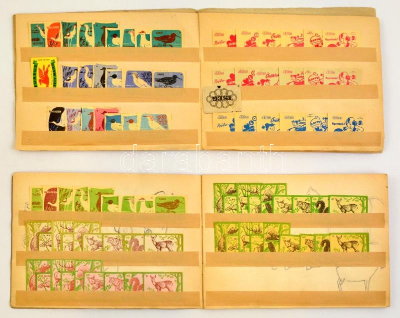 Leírás: Kis gyufacímke gyűjtemény, közte sorozatok is, másfél füzetbe rendezve
