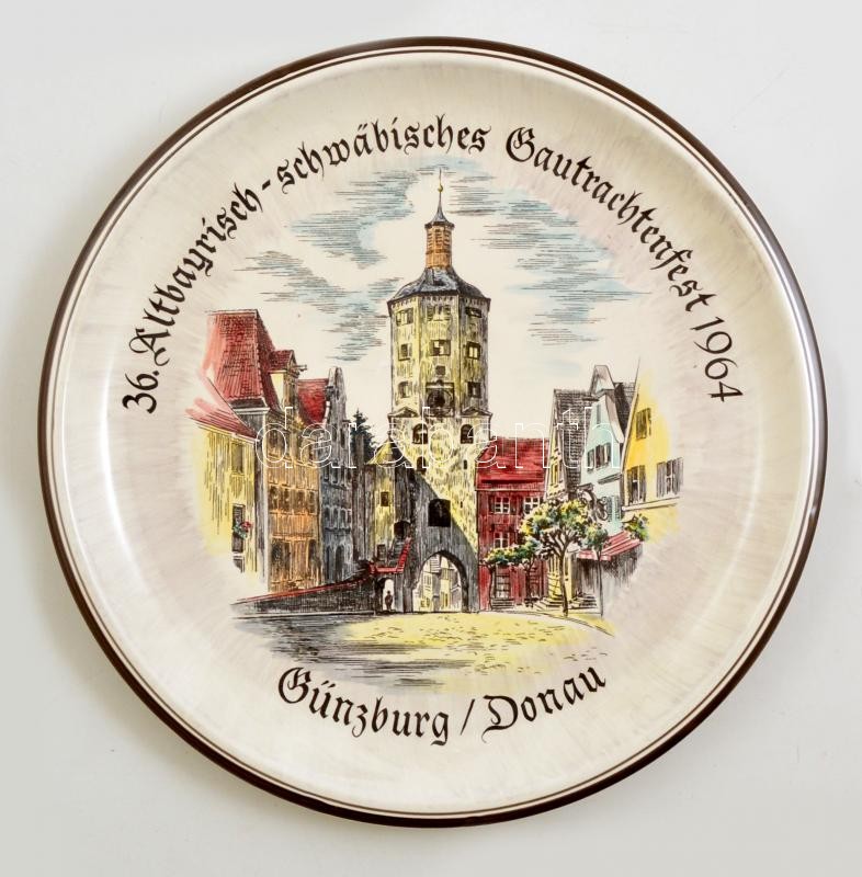 Leírás: Ulmerkeramik Günzburg/Donau emlék falitál, levonóképes, jelzett, hibátlan, d:31 cm