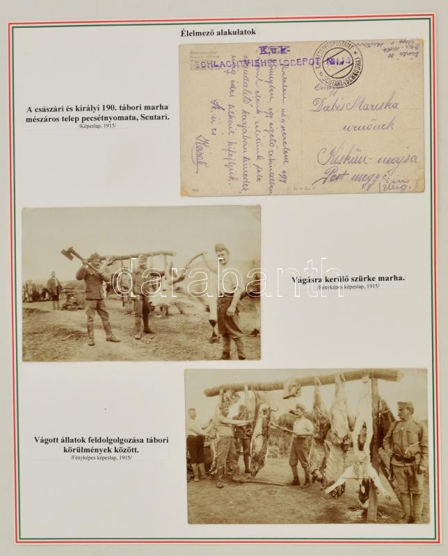 Leírás: 1915 Hadtáp alakulat az I. világháborúban. Két fotó és egy pecsételt tábori levél.