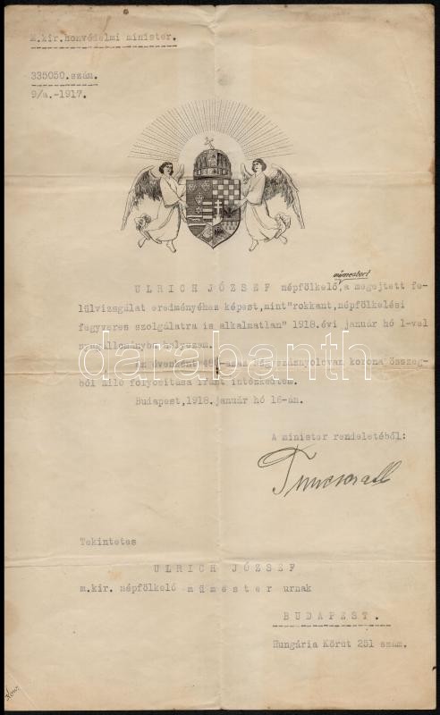 1918 Honvédelmi minisztériumi rendelet népfölkelő nyugdíjazásáról https://www.darabanth.com/hu/318-Gyorsarveres/318.0/Festmeny-mutargy-papirregiseg-egyeb/Militaria~27/1918-Honvedelmi-miniszteriumi-rendelet-nepfolkelo-nyugdijazasarol~II1755483