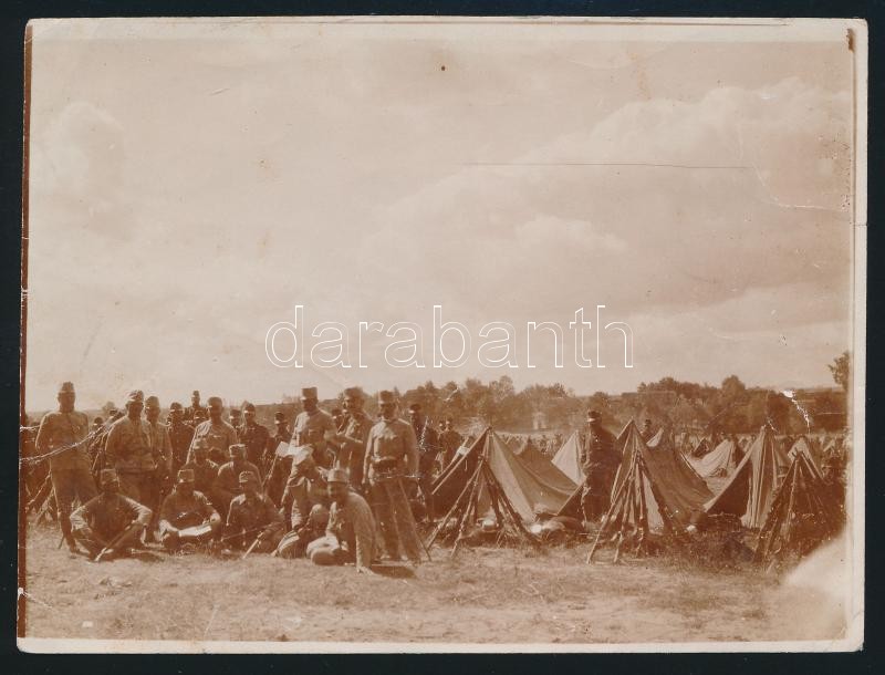 Leírás: cca 1915 A cs. és k. kolozsvári 62. gyalogezred táborozás közben 11x8 cm