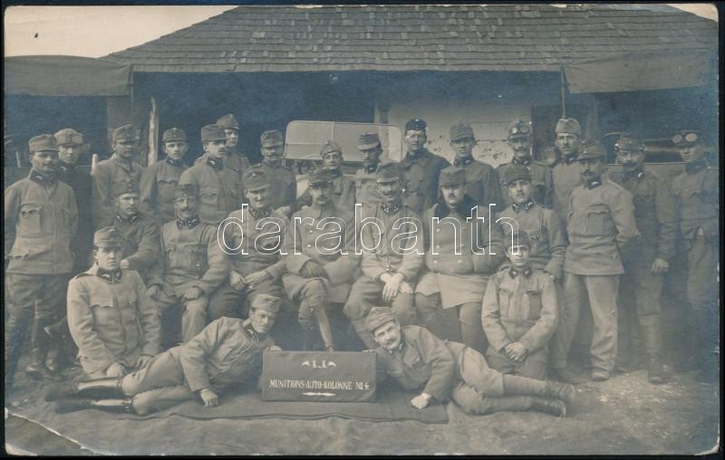 cca 1915 k.u.k. Munitions Auto Kolonne No 4. katona csoportkép fotólap... https://www.darabanth.com/hu/318-Gyorsarveres/318.0/Festmeny-mutargy-papirregiseg-egyeb/Militaria~27/cca-1915-kuk-Munitions-Auto-Kolonne-No-4-katona-csoportkep-fotolapon~II1755302