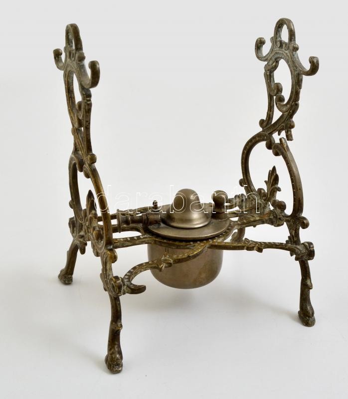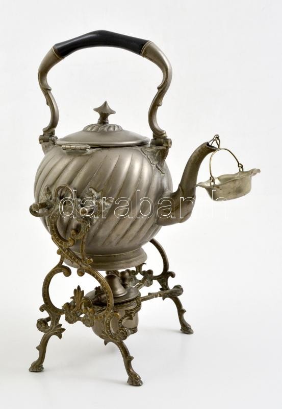 Leírás: Gerhardt & Co alpakka szamovár, teaszűrővel, réz tartóval, jelzett, jó állapotban, m:35 cm