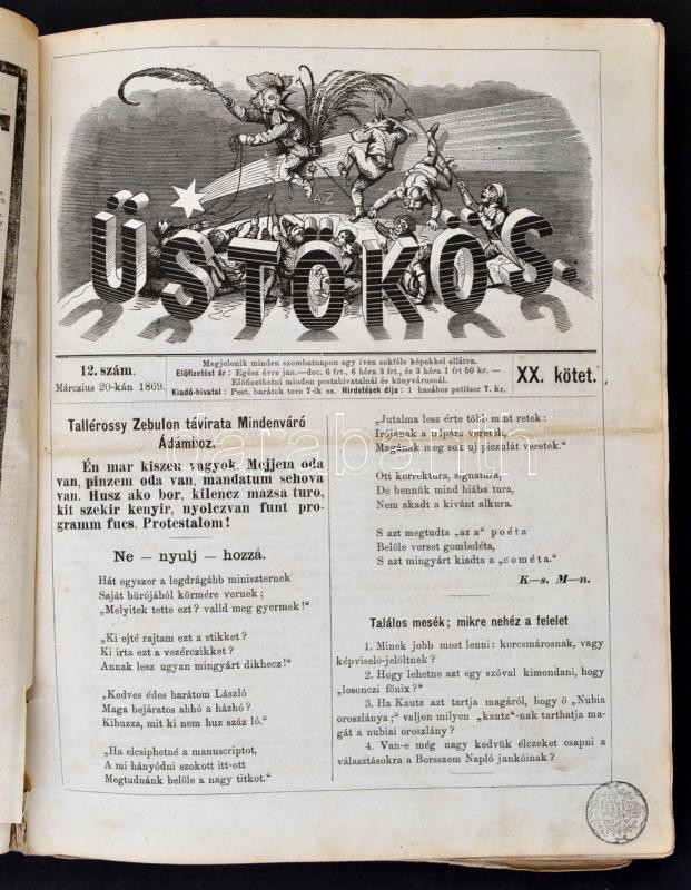 Leírás: 1869 Az Üstökös című lap számai könyve kötve, lapok kijárnak, megviselt állapotban