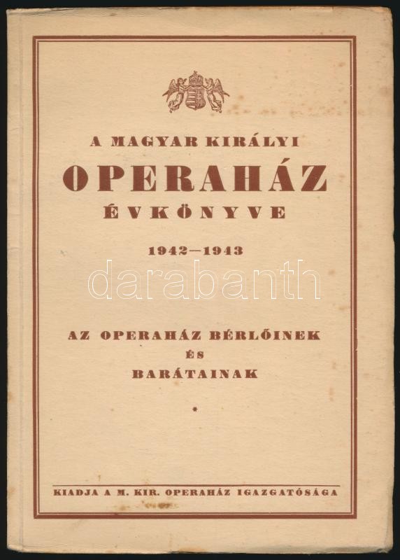 A Magy. Kir. Operaház évkönyve. 1942-43. Az Operaház bérlőinek és bará... https://www.darabanth.com/hu/318-Gyorsarveres/318.0/Festmeny-mutargy-papirregiseg-egyeb/Nyomtatvanyok~29/A-Magy-Kir-Operahaz-evkonyve-1942-43-Az-Operahaz-berloinek-es-baratainak-Kiadoi-illusz~II1758319