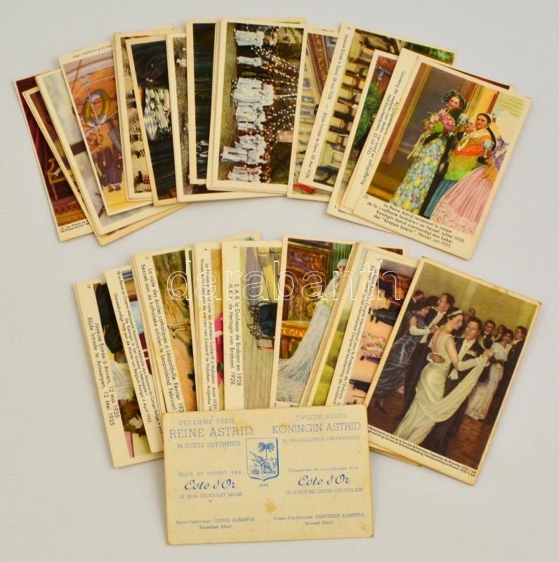 Cote d'Or.Reine Astrid belga csokoládé gyűjtőkártya 52 db a királyi pár életéből vett képekkel / 52 chocolate collectors card with images of the Belgian queen. 9x12 cm