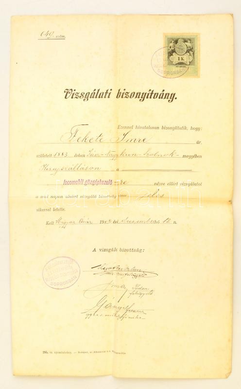 1902 Locomobil gőzgépkezelő bizonyítvány https://www.darabanth.com/hu/318-Gyorsarveres/318.0/Festmeny-mutargy-papirregiseg-egyeb/Okmanyok~16/1902-Locomobil-gozgepkezelo-bizonyitvany~II1748782