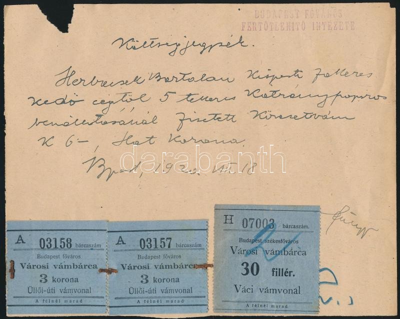Leírás: 1920 Bp., Kispesti fakereskedő által fizetett városi vámbárca igazolással