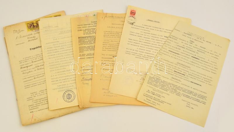 cca 1925-1950 Szentendre, a Budavidéki Villamossági Rt. magánhasználatú távbeszélőhálózatának engedély okiratai, jegyzőkönyvei, több évből összefűzve a kiépítéstő az államosításig