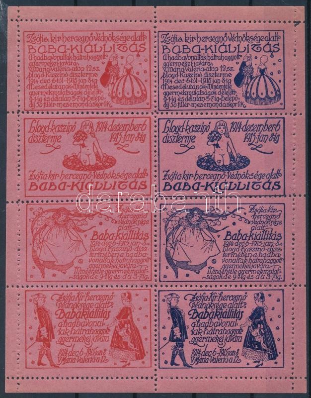 Leírás: 1915 Babakiállítás levélzáró reklámbélyeg kisív
